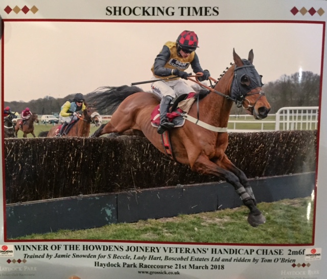 I was delighted that Shockingtimes won the Veterans race as he had been threatening to win all season but had appeared very unlucky on 3 occasions. However, Tom O’Brien gave him a lovely ride and he won with any amount of ease, which is exactly what he deserved. He’s not been the easiest horse to train, and so it was a very enjoyable winner.