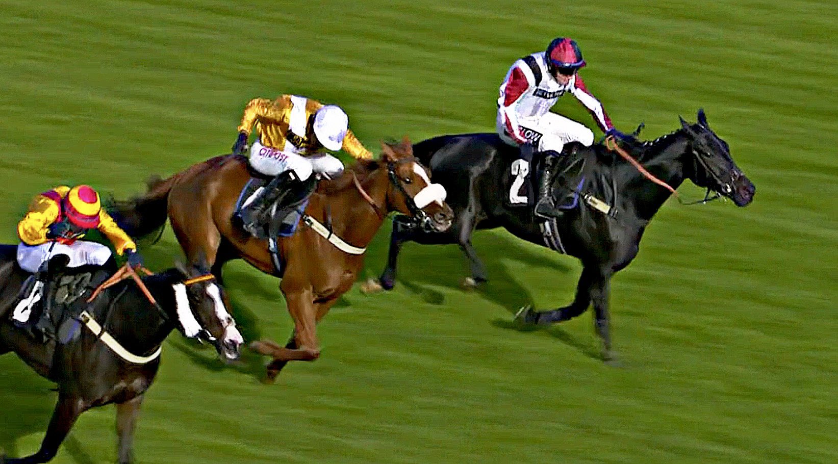 Leg two: Ebonello wins a bumper in Her Majesty The Queen Consort's colours.